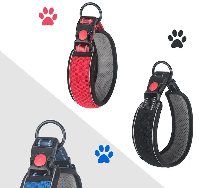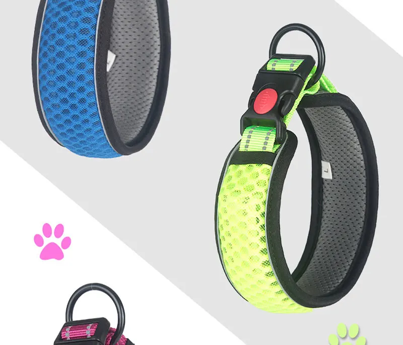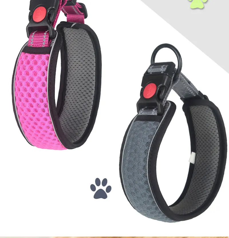 Reflective Dog Collar Pet Collar Pet Traction Rope Suitable Soft Neoprene Padded Breathable Nylon Pet Collar Adjustable